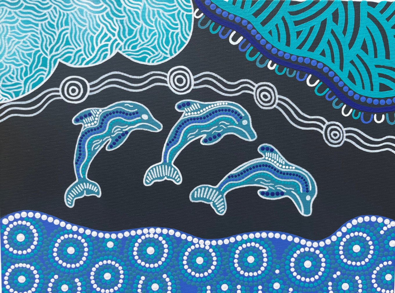 "Travel together" is a painting that shows dolphins travelling in pods. I wanted to showcase that we will always have them special people in our lives to travel with even if they aren't physically with us.