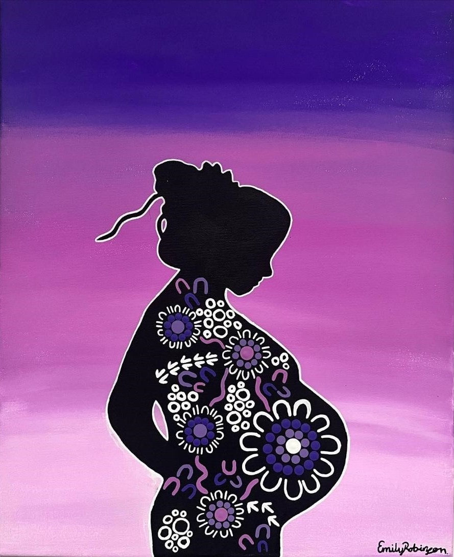 This painting represents the journey of a pregnant mother and her baby.